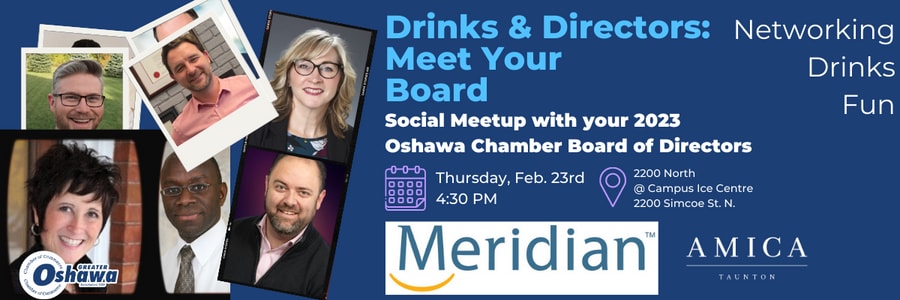 Join us after work on Thursday, February 23rd for a nice cold drink and an opportunity to meet our new and returning Greater Oshawa Chamber of Commerce Board Members!