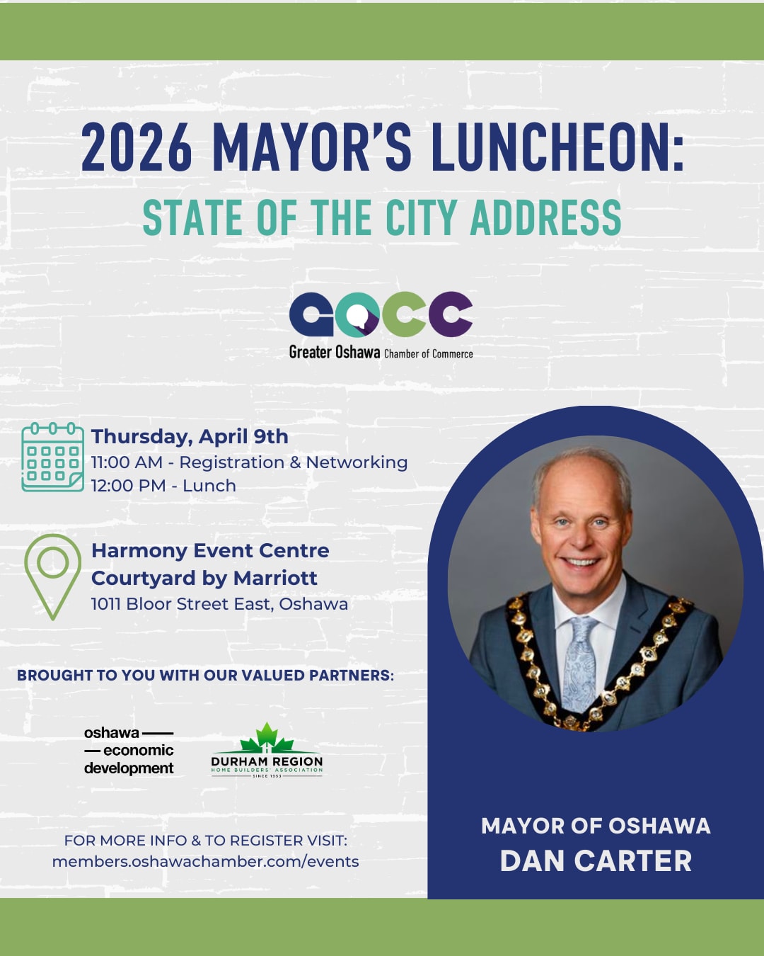 Don’t miss this opportunity to connect with business leaders, community members and local officials, while gaining firsthand insights into the priorities driving Oshawa forward!